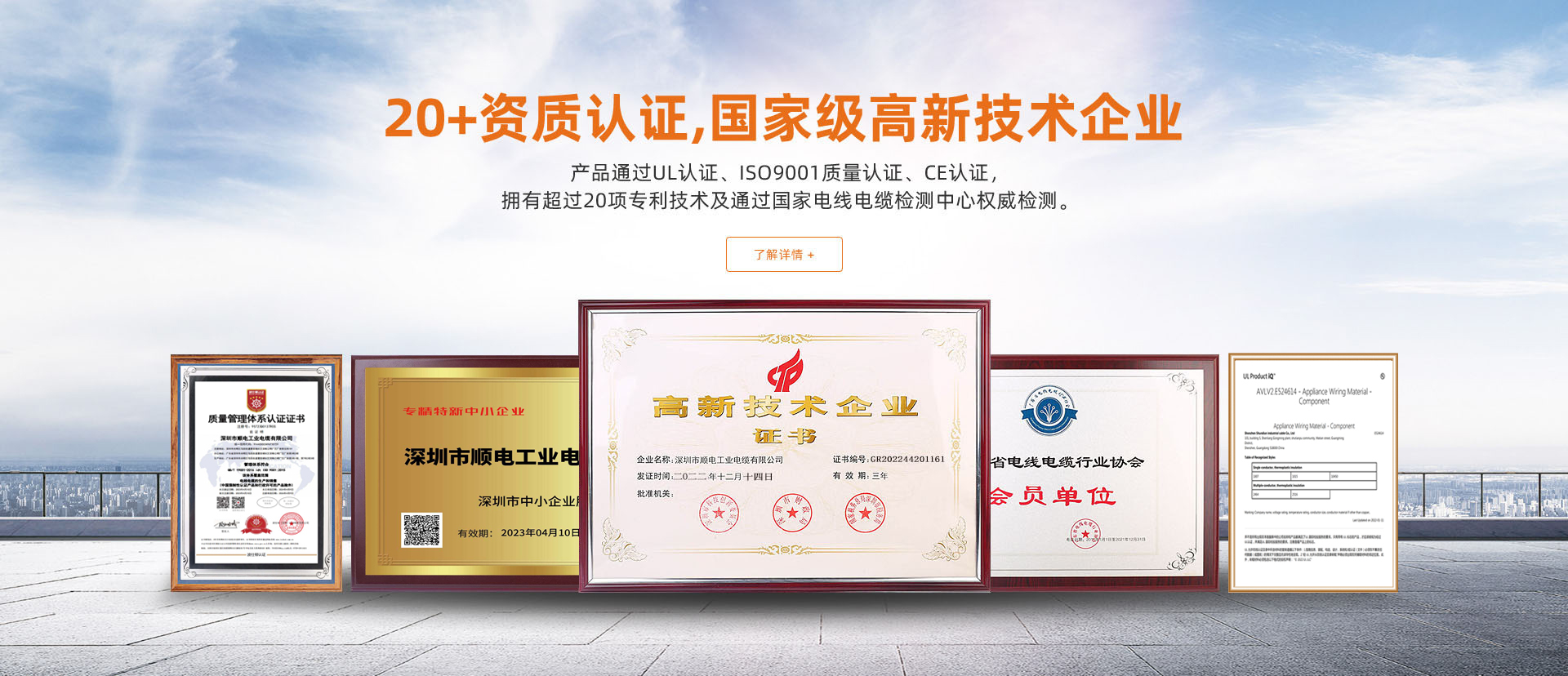 資質認證齊全,國家高新技術企業,15項專利技術産品通過UL認證、ISO9001質量認證、CE認證,擁有超過十五項專利技術及通過國家電線電纜檢測中心權威檢測。