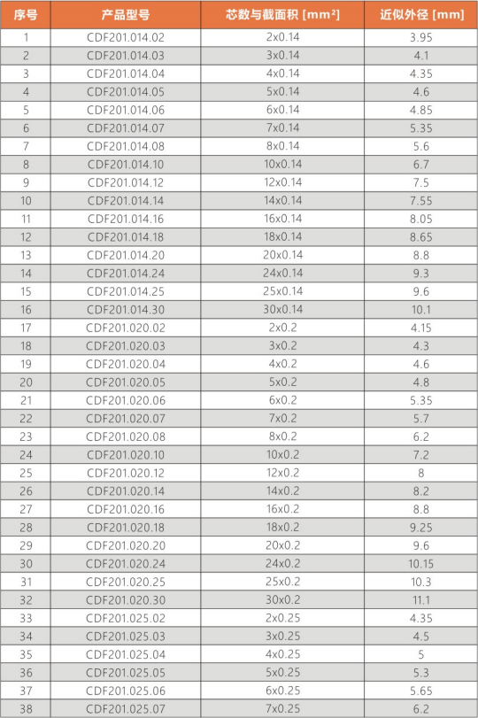 該電纜廣泛用于控制連接線,裝配線,生産線及電子控制設備的數據傳輸,PUR外護套,耐撕裂,耐礦物油,防水解,耐酸堿,專爲往複彎曲移動的高速運動設備拖鏈系統、動力拖鏈應用時高達1200萬循環彎曲壽命而設計,同時能保證電纜傳輸性能的穩定,最适合高速運動,小彎曲半徑,全天候惡劣環境中使用。