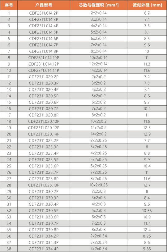 本産品适用于高架倉庫、機械/包裝機、輸送系統、戶内起重機,特别适用于高達100米的無支承滑行移動,該電纜采用耐油PVC做内護,使其内部結構更緊湊,不易松散,芯線以短節距絞成一根對線,再以短節距束絞成導線對,如此可大幅降低電纜芯線之間的電磁幹擾,延長其使用壽命,PUR外護套,具有高強度耐彎折、耐磨損、抗撕裂,耐油等特點。